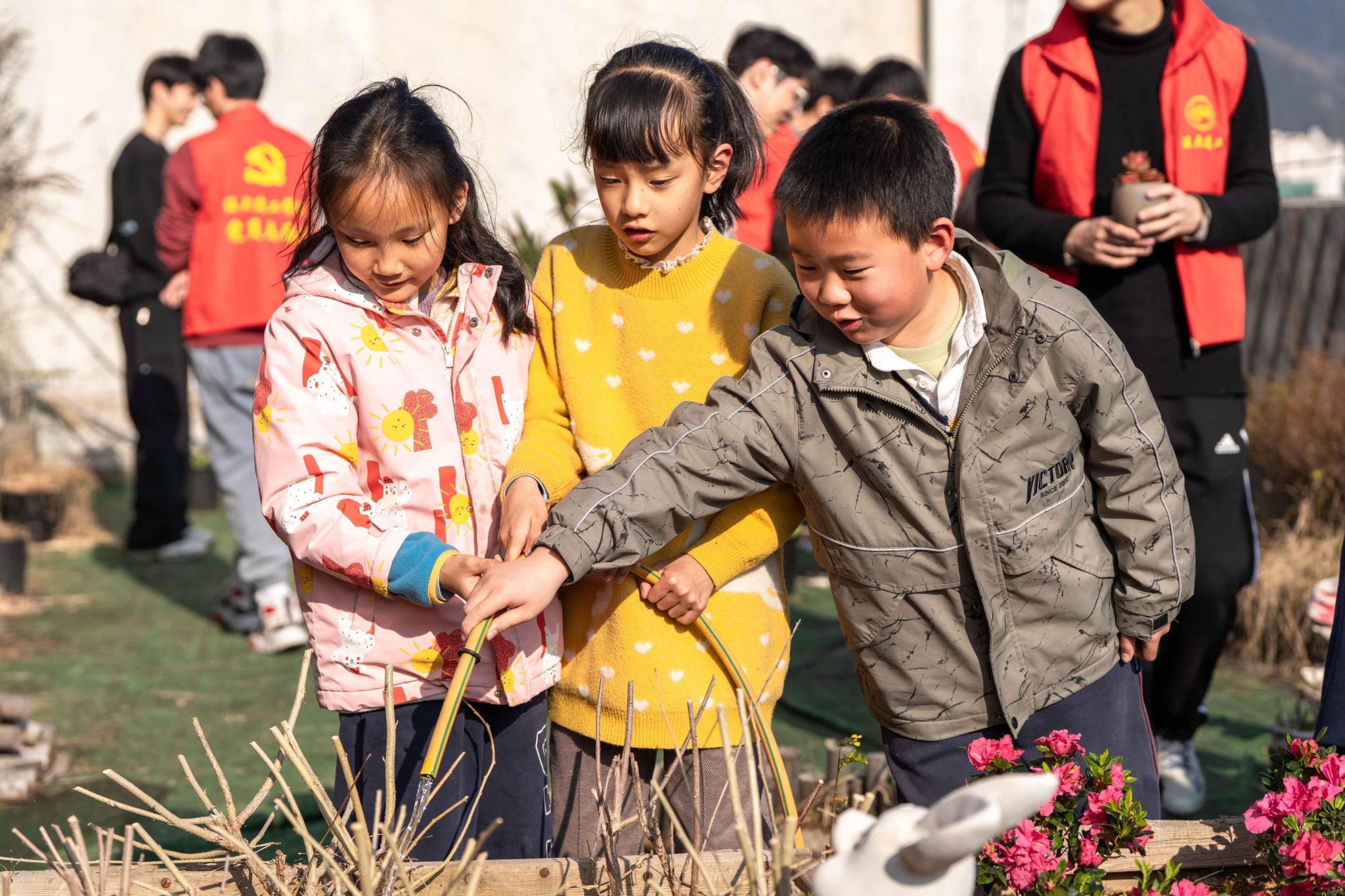 成人视频 建筑工程学院的志愿者们为小朋友们介绍了不同绿植的特点,共同完成了绿植栽种活动,为今年的春天栽下了新的希望。